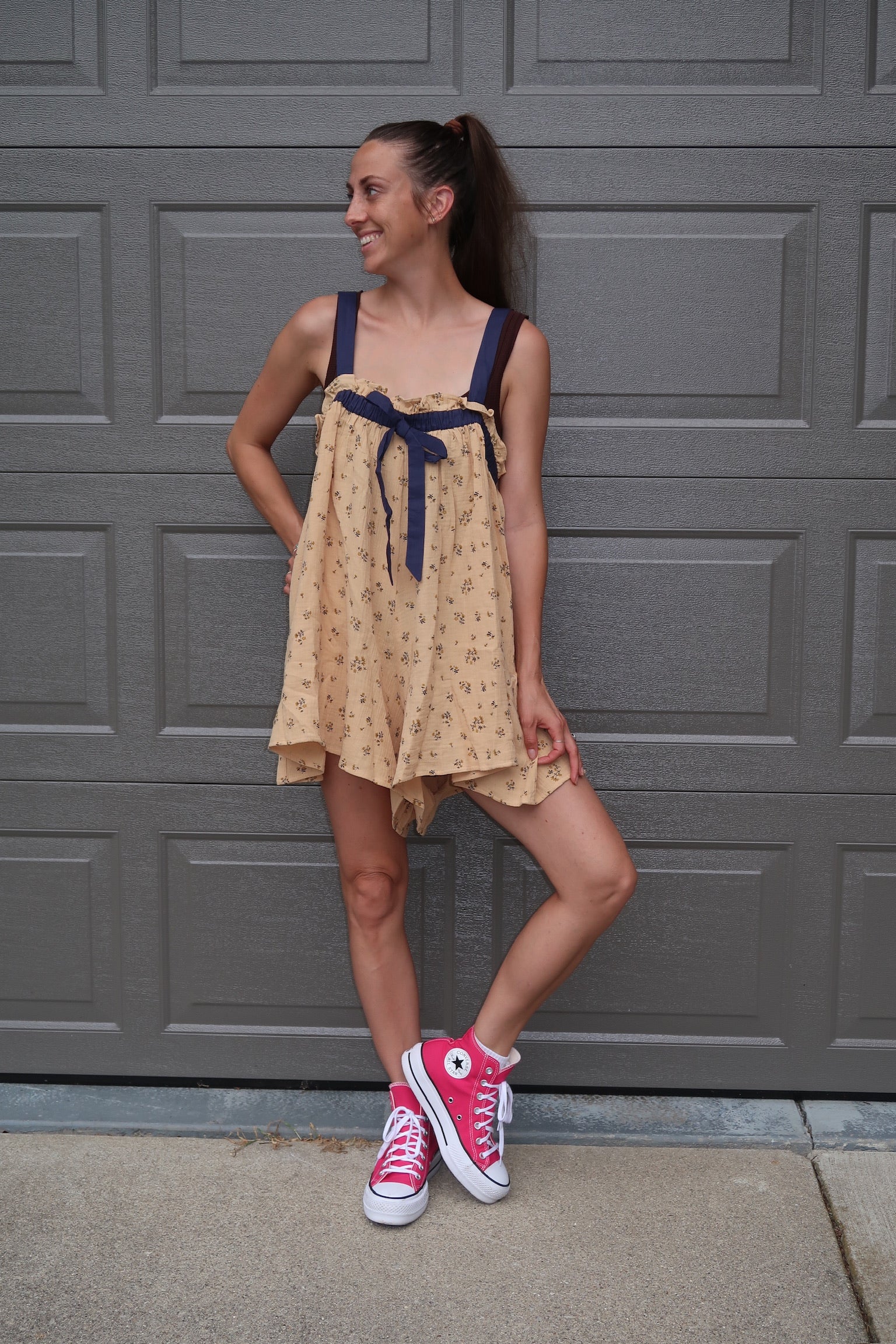 mustard floral romper